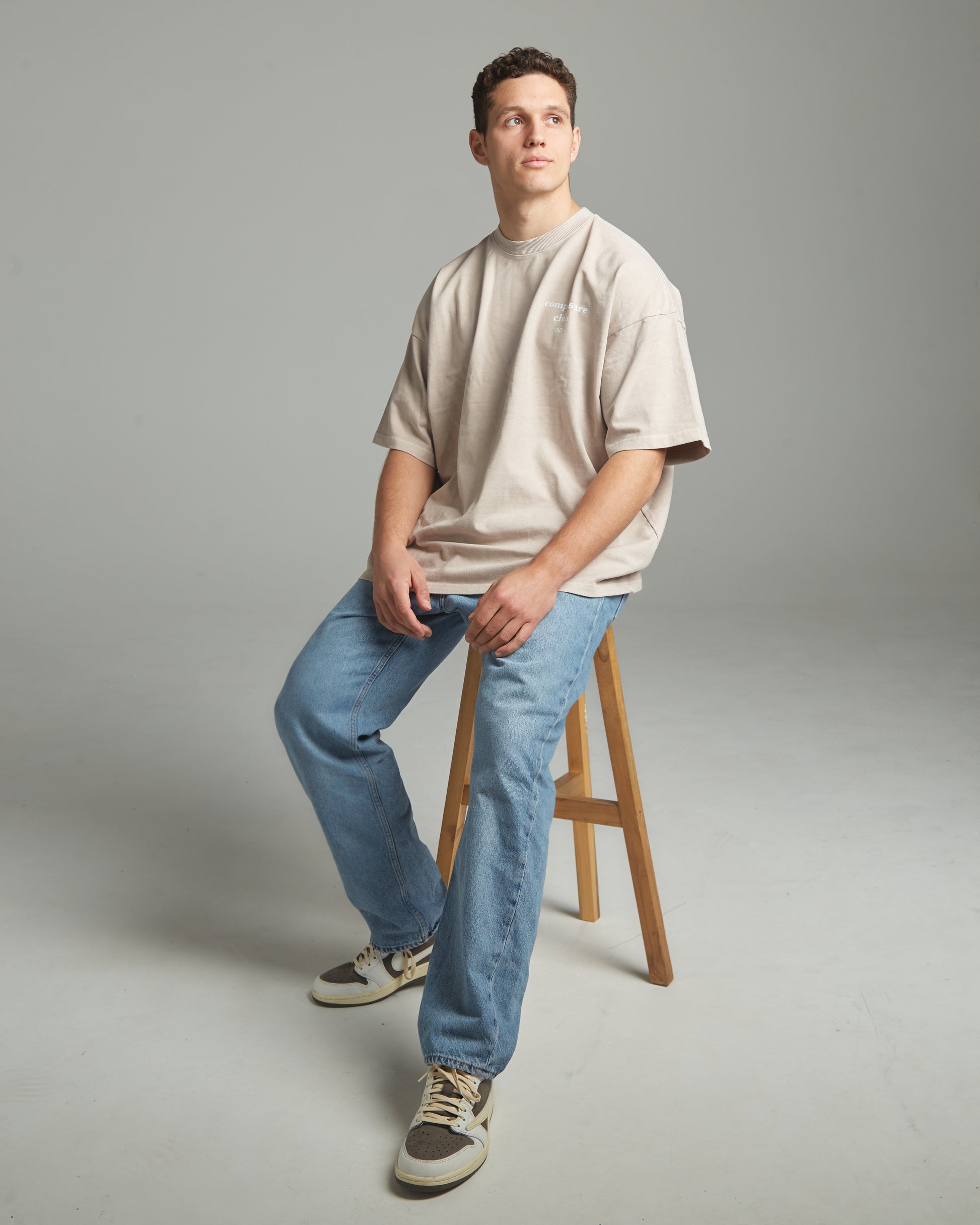 T-shirt lourd teint à la main, 330 g/m², couleur sable, avec logo CC infinity blanc imprimé