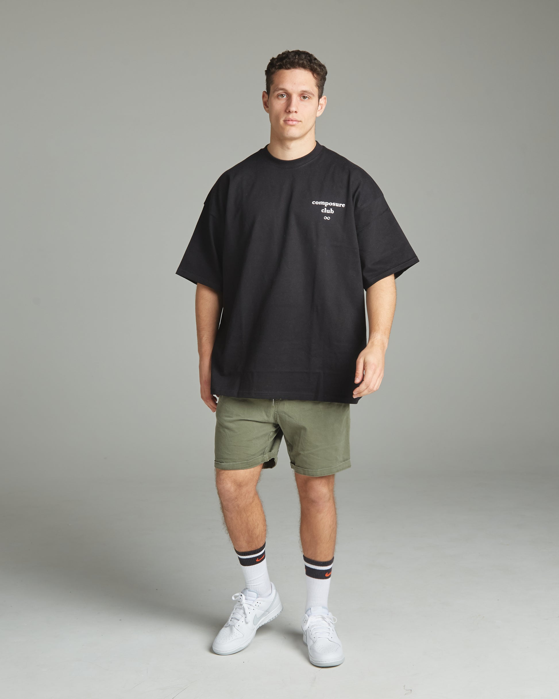 T-shirt pesante da 330 g/m² tinta a mano in nero con logo CC Infinity bianco stampato